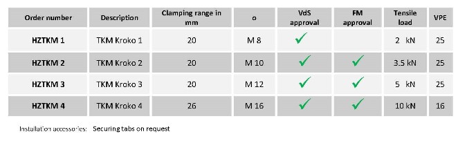 The revolutionary TKM Kroko beam clip made of steel: