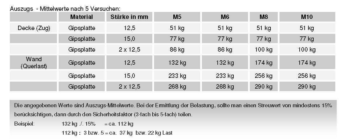 - Geeignete Befestigungsuntergründe: Hohlkammerdecken und -steine, Gipskarton-, Farmacell- und Holz(faser)platten.