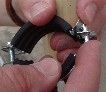 Federklappplättchen zurückziehen und Rohrschelle öffnen.